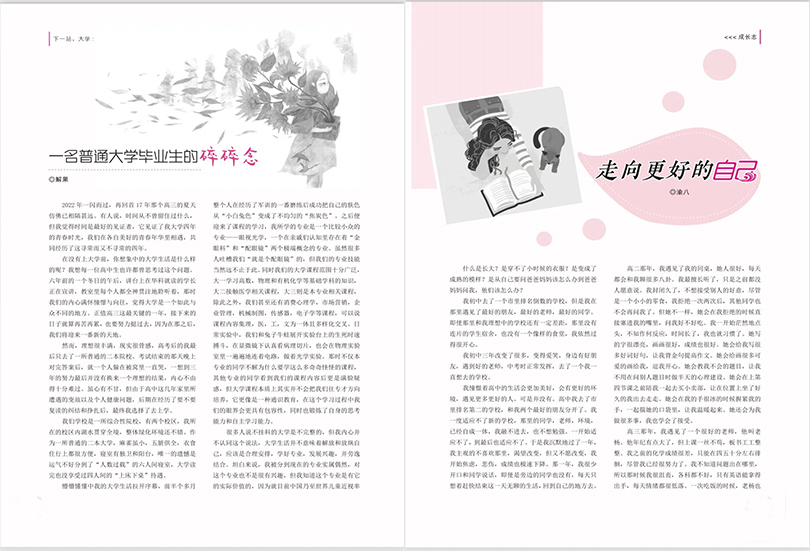 除了文字内容,《破茧成蝶》杂志还注重视觉设计。每一期的杂志都经过精心设计,呈现出独特的视觉风格,让读者在阅读的同时也能享受到美的享受。杂志以其独特的视角和深度的内容,吸引了众多有思想、有追求的读者。它不仅仅是一本杂志,更是一个思考和发现的平台,引领着人们不断探索未知的世界。